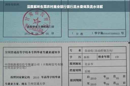 随着金融行业的快速发展,银行流水作为个人和企业经济活动的真实记录,越来越受到人们的关注,特别是在贷款、信用卡申请等方面,银行流水成为了评估个人信用的重要依据,本文将详细介绍东莞农村商业银行的银行流水相关内容,帮助大家更好地了解和使用银行流水。