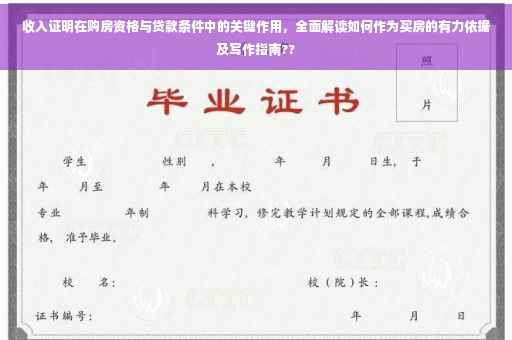 随着城市化进程的加速,越来越多的人开始关注购房问题,在购房过程中,收入证明是一个重要的环节,它不仅是银行审批贷款的重要依据,也是购房者自身承担还贷能力的重要体现,收入证明可以买房吗?本文将围绕这一问题展开全面解读,带您深入了解购房资格与贷款条件。