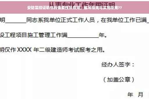 随着社会的快速发展,安全问题日益突出,安防监控证明书成为了现代社会不可或缺的一部分,本文将详细介绍安防监控证明书的作用、意义、办理流程以及实际应用场景,帮助读者更好地了解和使用这一重要文件。