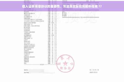 随着互联网和数字技术的飞速发展,个人信用体系的建设日益受到重视,在这个背景下,收入证明用章协议成为了保障个人信用信息真实可靠的关键环节,本文将详细介绍收入证明用章协议的概念、目的、作用及其实际应用,帮助大众更好地了解和使用这一重要工具。