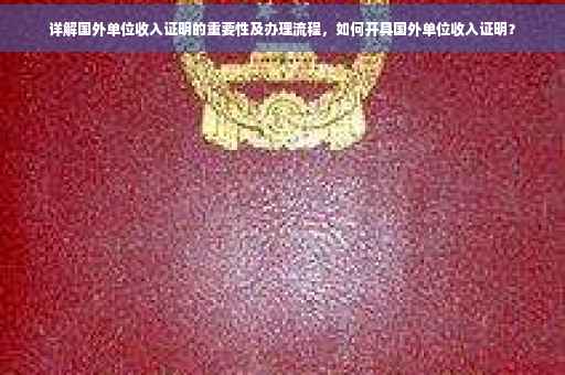 国外单位收入证明是出国求学、工作或居留的重要文件之一,具有评估个人信用、工作稳定性和经济状况的重要作用,本文详细介绍了国外单位收入证明的作用、办理流程以及注意事项,希望能为大家顺利办理国外单位收入证明提供帮助,在办理过程中,应确保提供的材料真实、准确、完整,并妥善保管好收入证明,如有任何问题,可咨询专业人士或相关机构,祝愿大家在国外的生活和工作一切顺利!