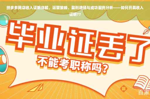 随着互联网电商的飞速发展,拼多多作为新兴电商平台迅速崛起,吸引了大量创业者的目光,本文将围绕拼多多网店的收入证明展开探讨,介绍拼多多网店的运营策略、盈利途径,并结合成功案例进行分析,旨在为有意入驻拼多多平台的商家提供有价值的参考。