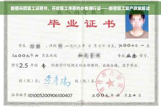 随着新冠疫情逐渐得到控制,各行各业也开始逐步复工复产,新疆兵团作为重要的生产建设力量,也不例外地开始了复工之路,而在这个过程中,一份复工证明书成为了开启复工序幕的必备通行证,本文将详细介绍新疆兵团复工证明书的相关内容,帮助大家了解复工证明书的申请流程、使用范围及注意事项等。