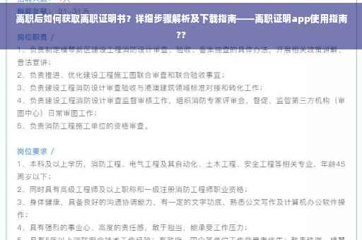 摘要:离职后,获取离职证明书至关重要。通过下载并安装离职证明app,可以轻松获取。步骤解析如下:在应用商店搜索并下载该app;按照app内的指引,输入个人信息及离职相关情况;提交申请并等待原公司审核。审核通过后,即可下载并保存离职证明书。此过程便捷高效,有助于个人职业生涯的顺利过渡。