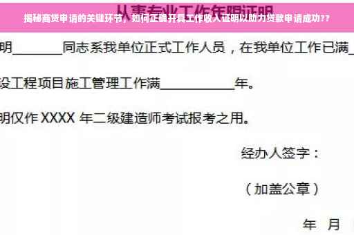 随着经济的发展和金融市场的繁荣,越来越多的人选择通过商业贷款来实现购房、购车或其他大额消费,在申请商贷的过程中,工作收入证明是至关重要的一环,本文将详细介绍商贷工作收入证明的作用、内容要点、注意事项以及常见问题解答,帮助读者更好地了解这一环节,顺利申请贷款。