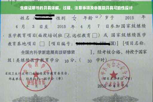 摘要:生病证明书是证明个人健康状况的重要文件,其开具过程及注意事项需详细了解。生病证明并非只能在医院开具,但医院是最常见的开具机构。开具过程包括挂号、就诊、医生诊断并开具证明等步骤。注意事项包括确保证明真实性、选择合适的医生、注意证明的详细内容和格式等。在获取生病证明书时,应遵循相关规定,确保证明的有效性和合法性。