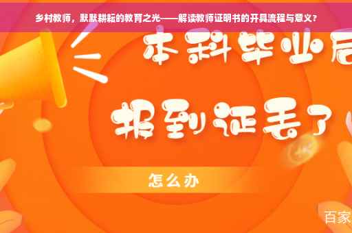 摘要:乡村教师是乡村教育的默默耕耘者,他们致力于培养乡村孩子的未来。教师证明书的解读和开具对于了解乡村教师的工作状况和资质至关重要。本文介绍了如何解读教师证明书以及开具乡村教师证明书的流程,强调了乡村教师在教育事业中的重要作用。通过本文,读者可以了解乡村教师的职责和重要性,进一步关注和支持乡村教育事业的发展。