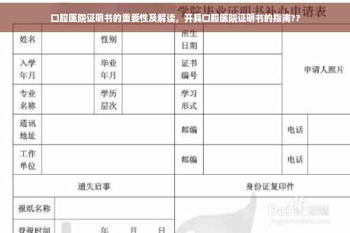 随着人们对口腔健康的日益重视,口腔医院证明书的作用逐渐凸显,这份文件不仅是患者口腔健康状况的权威证明,更是后续治疗、康复和法律问题的重要依据,本文将详细介绍口腔医院证明书的重要性、内容构成和解读方法,帮助大家更好地了解和使用这一重要文件。