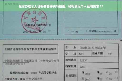 在现代社会,随着互联网的普及和电子政务的发展,越来越多的人开始关注如何在家中办理各种证明书,这些证明书可能是为了应对个人事务、工作或学习等方面的需求,本文将详细介绍如何在家轻松办理证明书,帮助您解决繁琐的证明问题。