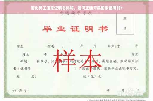 摘要:吉化员工回家证明书是关于吉化员工结束工作后回家的证明文件。开具此证明书需要遵循一定的格式和要求,一般包括员工姓名、身份证号、工作单位、工作岗位、工作时间及回家事由等基本信息。员工需向所在单位的人力资源部门或相关部门申请,填写申请表格并提交相关证明材料,经过审核确认后即可开具回家证明书。该证明书对于员工顺利回家及后续相关事宜具有重要的作用。