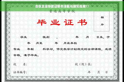 随着经济的蓬勃发展和社会不断进步,创业热潮持续高涨,在众多企业组织形式中,合伙企业因其独特的优势备受广大创业者的青睐,而在合伙企业的经营旅程中,存款证明书作为金融领域的重要文书,对于企业的融资、招投标及合作伙伴选择等方面具有不可替代的功用,本文将全面解析合伙企业存款证明书的相关内容,助您更好地了解和使用这一金融工具。