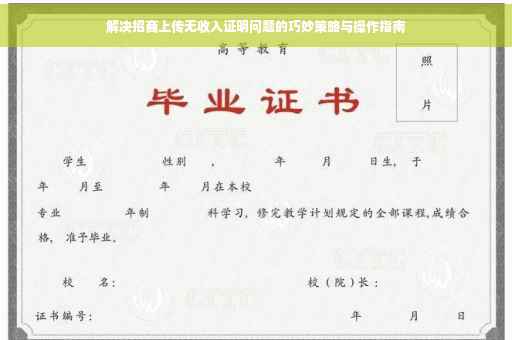 摘要:,,面对招商上传无收入证明的问题,可采取多种巧妙解决方案。可提供其他财务证明文件,如银行流水、税务证明等,以证明经济状况。可考虑提供与招商相关的业务合作证明,展示合作稳定性和信誉。积极与招商方沟通,解释特殊情况并寻求灵活解决方案。通过多渠道证明自身经济实力和合作诚意,可有效解决招商上传无收入证明的问题。