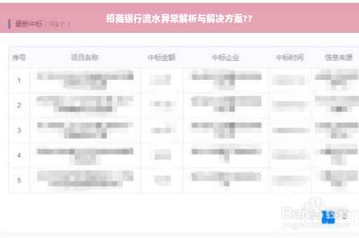 摘要:招商银行流水异常现象解析,针对银行流水出现异常情况,需引起关注。异常可能涉及不当交易、欺诈行为等。解决之道包括及时联系银行客服核实情况,提供相关证明资料,配合银行调查。加强账户安全,定期审查流水记录,提高风险防范意识。确保个人和企业资金安全,维护金融秩序稳定。