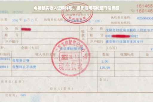 摘要:本文将详细介绍电话核实收入证明的过程,包括细节解析和操作指南。通过拨打电话进行收入证明核实已成为常见的做法,但需注意,提供虚假收入证明是违法行为。本文将帮助读者了解如何正确进行电话核实,并强调诚信的重要性,遵守法律法规。