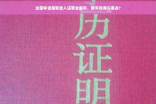 摘要:关于法国申请居留收入证明的详解,该证明是申请法国居留的重要材料之一。撰写时需注意包括个人基本信息、收入状况、工作证明等关键内容。本文将指导如何正确撰写法国申请居留收入证明,包括必要的格式和要点提示,以帮助申请者顺利提交申请。