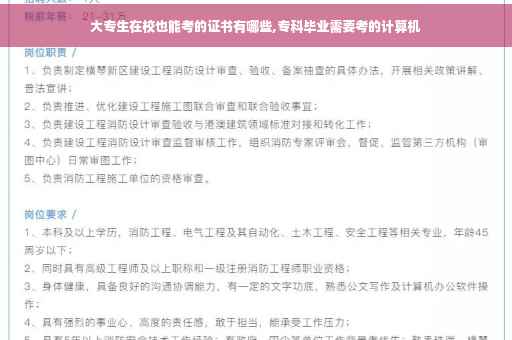 到此,以上就是小编对于大专生在校也能考的证书的问题就介绍到这了,希望介绍关于大专生在校也能考的证书的3点解答对大家有用。
