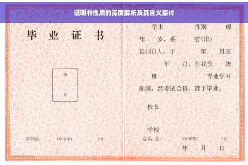 摘要:本文探讨了证明书的性质深度解析及其含义。证明书性质是指一份文件或证书所具备的特性,这些特性包括其权威性、真实性、有效性等。深度解析证明书性质,有助于我们更好地了解其在不同场合下的作用和价值。通过解析证明书性质,我们能够判断其可靠性和可信度,从而做出更为明智的决策。