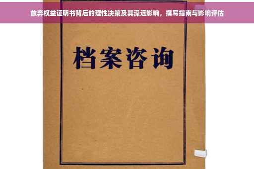 随着社会的进步和法治观念的普及,越来越多的人开始重视个人权益的维护,有时候,人们可能会面临需要放弃某些权益的情境,这时,一份放弃权益证明书便显得尤为重要,本文将围绕放弃权益证明书展开讨论,探究其在不同场景下的应用,帮助大家理性决策,并深入分析其可能带来的深远影响。