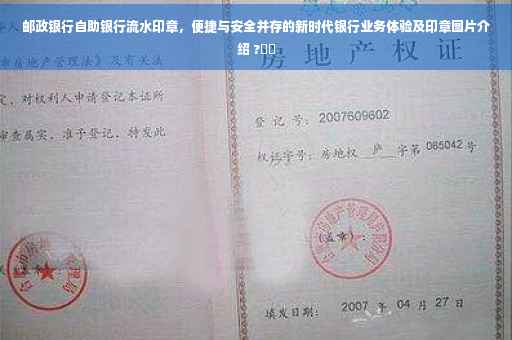随着科技的飞速发展,银行业也在不断创新服务模式,以满足客户日益增长的需求,邮政银行作为国有大型商业银行之一,始终致力于为广大客户提供优质、便捷的金融服务,近年来,邮政银行自助银行流水印章的推出,进一步提升了银行业务的便捷性和安全性,为客户带来了全新的业务体验,本文将详细介绍邮政银行自助银行流水印章的相关内容,带您领略新时代银行业务的魅力。