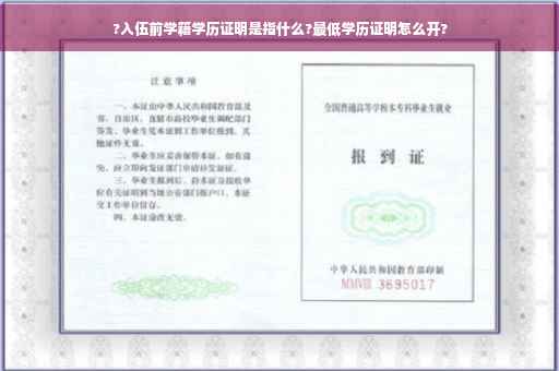 入伍前学籍学历证明是指的什么?入伍前学籍证明和学历证明指的是,如果你是在校大学生,那么在学校入伍,就己经证明了你的学籍,不用再开什么证明,因为有学校为你做担保,因为是在校大学生,还没有取得学历,所以国家要保留你的学籍,服役期满后返校完成学业,取得学历
