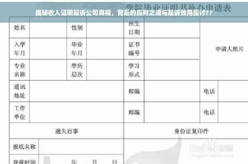 近年来,随着社会的快速发展,越来越多的人开始关注自己的合法权益,收入证明问题成为了不少人心中的痛点,一些人因种种原因未能获得满意的收入证明,进而引发纠纷,甚至走上了起诉公司的道路,本文将深入探讨收入证明起诉公司的背后真相,为广大读者提供应对之道。
