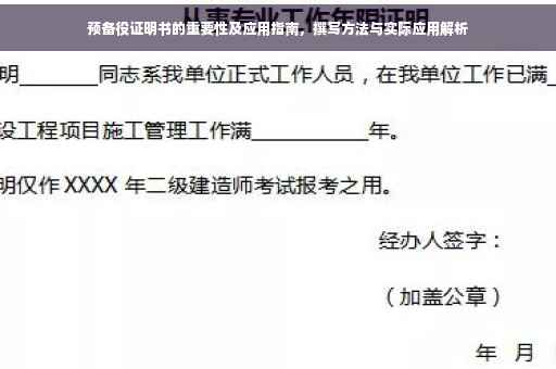 预备役证明书是我国国防建设和军队管理中不可或缺的重要身份凭证和资质证明,随着社会的进步和时代的发展,越来越多的人开始认识到预备役证明书的重要性,并积极参与到预备役部队的建设中,本文旨在详细介绍预备役证明书的作用,帮助读者更好地了解和使用这一重要证明。