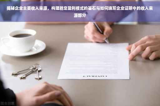 摘要:本文将揭示企业主要收入来源的奥秘,并探讨如何构建稳定的盈利模式。企业证明主要收入来源是确保长期盈利的基础,涵盖了产品销售、服务收入和其他盈利渠道等方面。通过深入了解并优化这些收入来源,企业可以稳固自身的市场地位并实现可持续发展。本文将提供有关如何填写企业主要收入来源的指导,以帮助企业在竞争激烈的市场中脱颖而出。