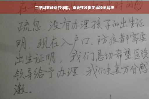 二押同意证明书是房产再次抵押过程中不可或缺的法律文件,在办理过程中,当事人应充分了解相关法规,确认当事人身份,明确权利和义务,并选择正规机构办理,希望通过本文的介绍,读者能更好地了解和运用二押同意证明书,确保自身权益得到保障。