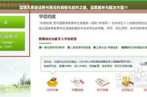 摘要:针对监理无质量证明书的问题,首先需要深入了解背后的真相,包括相关责任方、原因等。面对这种情况,可以采取多种措施,如加强沟通协商、审查相关文件资料、寻求专业意见等。也需要对相关责任方进行追责和整改,确保工程质量得到保障。最终目的是确保工程项目的质量与安全,保障公众利益和生命安全。