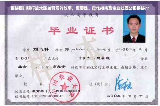 摘要:本文将揭示四川银行流水账单背后的故事,让读者深入了解银行流水账单的重要性和操作指南。还将介绍四川地区专门处理银行流水账单的公司及其服务内容,帮助公众更好地管理和使用自己的银行流水账单。通过本文,读者将更好地掌握银行流水账单的相关知识,为自身财务管理提供有力支持。