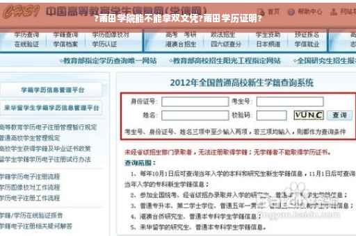 莆田学院是一所普通本科院校,根据国家相关规定,学生在大学期间可以参加学院和学校之间的合作项目或者交换计划,从而可能获得双文凭。然而,获得双文凭需要满足一定的条件,如学分要求、语言能力、学术成绩等。因此,是否能获得双文凭取决于个人的努力和机会。总的来说,莆田学院的学生有机会通过合作项目或交换计划获得双文凭,但具体情况需要根据个人实际情况而定。
