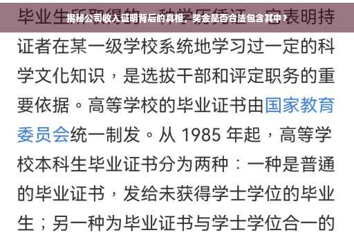 在当今社会,随着经济的不断发展和竞争的加剧,越来越多的人开始关注自己的工作和收入状况,在这个背景下,公司收入证明成为了许多人在求职、贷款等方面的重要证明材料之一,一些人发现自己的公司收入证明上并没有包括奖金这一项,这引发了一系列的问题和疑虑,为什么有些公司的收入证明不加奖金呢?这背后隐藏着怎样的真相?本文将就此话题展开探讨。