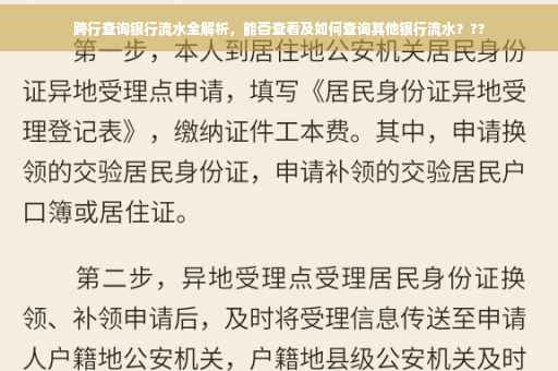 随着金融服务的日益便捷化,银行流水查询已成为个人和企业财务规划的重要一环,本文将围绕“银行流水能否跨行查询”这一问题,详细解析基本概念、可能性、查询方法以及注意事项,帮助读者更好地了解银行流水查询的相关内容。