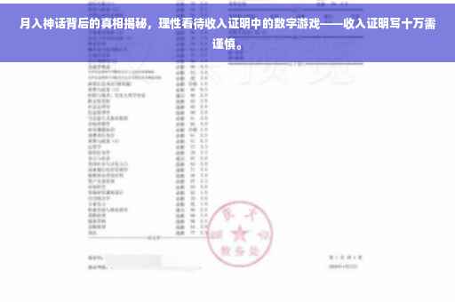 在这个信息爆炸的时代,社交媒体上充斥着各种关于高收入的故事,当我们看到诸如“月入十万不是梦”这样的标题时,内心难免会产生一种焦虑与渴望,本文将探讨收入证明背后的真相,并提醒大家在追求高收入的同时,如何理性看待数字背后的真实情况。