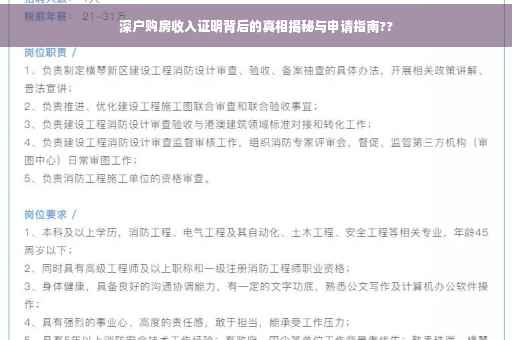 摘要:本文将介绍深户购房收入证明的重要性及其背后的故事与真相。通过详细阐述收入证明的开具流程和注意事项,帮助读者了解如何准备和提交符合要求的购房收入证明,顺利实现深户购房梦想。本文还将探讨购房过程中的其他相关事项,为读者提供有益的参考和建议。