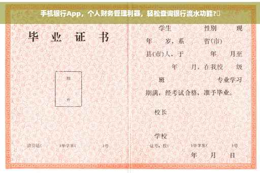 手机银行App作为个人财务管理的利器,不仅可以查询银行流水,还可以实现转账、汇款等功能,通过有效利用手机银行App查询银行流水,我们可以更好地了解自己的消费习惯,掌握资金流向,制定更合理的预算和理财规划,要注意保护个人信息和账户安全,希望本文能帮助你更好地利用手机银行App管理个人财务。