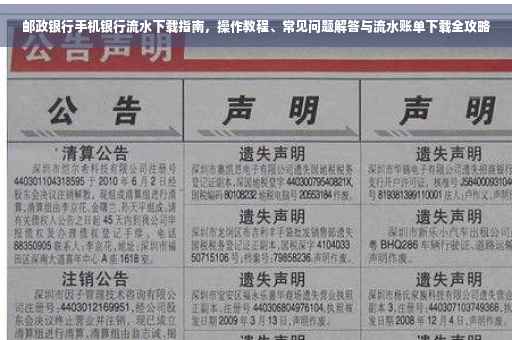 随着互联网技术的发展,越来越多的人开始使用手机银行来处理自己的金融业务,邮政银行手机银行作为一款便捷、安全的移动金融应用,受到了广大用户的青睐,本文将详细介绍邮政银行手机银行流水下载的操作步骤,并针对用户可能遇到的一些问题进行解答,帮助大家轻松获取银行流水。