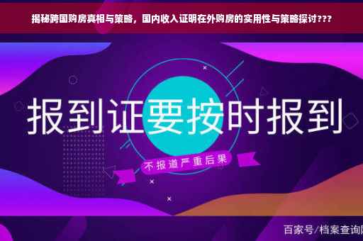 随着全球化的推进,个人财富积累的现象愈发普遍,越来越多的人开始考虑在外国购置房产,购房过程中,国内收入证明扮演着至关重要的角色,本文将深入探讨国内收入证明在外国购房的应用,揭示跨国购房的真相与策略,帮助读者更好地了解这一领域。