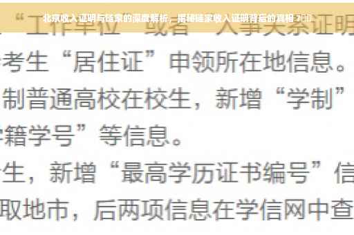 随着社会的快速发展,收入证明的重要性日益凸显,特别是在北京这座繁华都市,一份有力的收入证明往往能为个人的生活与工作带来诸多便利,作为知名的房产服务平台,链家的收入证明备受关注,本文将深入探讨北京收入证明与链家的紧密关系,助您更好地了解这一话题。