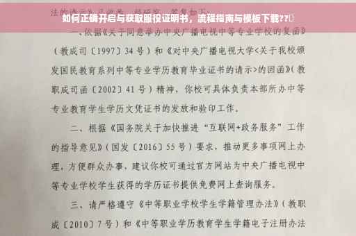 正确开具服役证明书是个人办理相关事务的重要步骤,本文提供了详细的流程、所需材料和注意事项,以帮助读者顺利完成申请过程,建议读者在申请过程中,注意准备齐全所需材料,了解流程,关注审核进度等,本文提供的流程和注意事项仅供参考,具体流程可能因地区和政策差异而有所变化,请以当地实际情况为准。