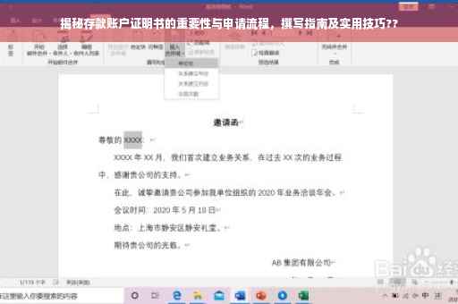1、提前了解:了解目标机构或组织对存款账户证明书的具体要求。