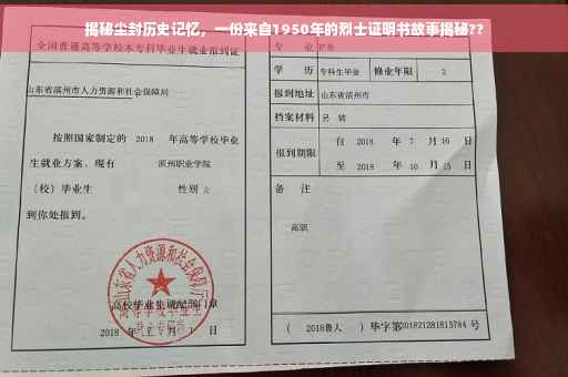 时间回溯到XXXX年XX月的一个晴朗午后,一位热衷于历史研究的自媒体作者在老家的老宅中意外发现了一份泛黄的纸张,这份纸张虽然历经岁月的洗礼,但上面的字迹依然清晰可见,经过仔细辨认,作者惊讶地发现这是一份来自1950年的烈士证明书,这份证明书的发现,如同一扇通往历史的大门被打开,引领着人们走进那个充满英勇与牺牲的年代。