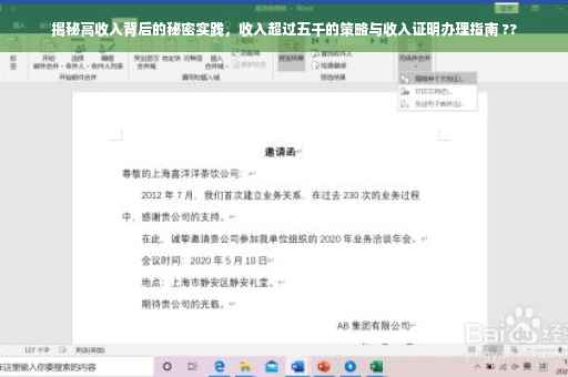 在当今社会,越来越多的人追求高收入,希望通过自己的努力工作和不断的学习提升自己的收入水平,收入证明作为个人经济能力的直接体现,对于求职、贷款等方面都具有重要意义,本文将深入探讨如何开收入证明超过五千元的秘密实践,帮助读者了解高收入背后的秘密。