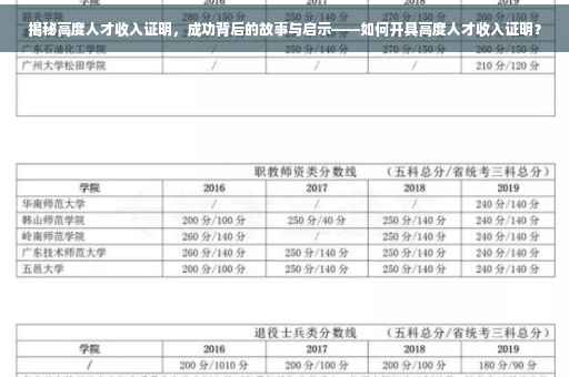 随着社会的快速发展,高度人才成为了推动社会进步的核心力量,他们凭借卓越的专业技能、丰富的实践经验和突出的创新能力,为企业和社会创造了巨大的价值,在公众眼中,高度人才往往与高薪、高品质生活等词汇紧密相连,高度人才的收入究竟如何?他们的成功背后又隐藏着怎样的努力和付出?本文将带您深入了解高度人才的收入证明,并探讨其背后的故事与启示。