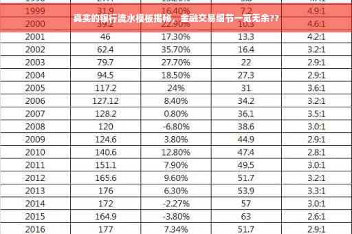 在当今社会,随着金融市场的繁荣和数字化的发展,银行流水账单已成为个人和企业经济活动中不可或缺的一部分,一份真实的银行流水模板不仅能帮助我们清晰地了解资金的流入流出情况,还能为财务管理提供有力的支持,本文将为您详细介绍真实的银行流水模板及其内容,助您更好地了解银行流水账单的结构和功能。