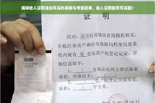 在求职、贷款或申请证件时,收入证明常常成为关键的一环,一些人为了展现自身经济实力或增加求职优势,会考虑适当提高收入证明的数字,然而这种做法背后隐藏着诸多真相与考量因素,需要我们审慎对待。