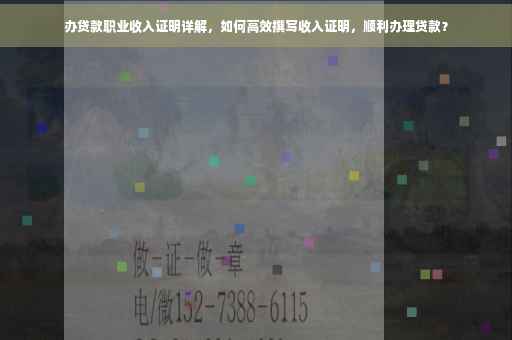 在现代社会,办理贷款已成为人们日常生活中的一部分,无论是购房、购车还是创业,贷款都能为我们提供资金支持,而在办理贷款的过程中,收入证明是必不可少的一环,本文将详细介绍如何开具职业收入证明,帮助大家顺利办理贷款。
