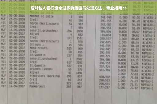 随着经济的发展和个人财富的积累,越来越多的人开始关注私人银行业务,随之而来的私人银行流水问题也逐渐浮出水面,面对大量的银行流水,很多人感到困惑和无助,本文将为你解析私人银行流水过多的原因,探讨应对策略,助你轻松应对这一问题。