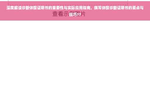 摘要:本文将深度解读诊断休假证明书的重要性及其实际应用。诊断休假证明书是一份由医生出具的重要文件,它证明了患者因疾病或受伤需要休息,并详细说明了患者的健康状况和所需休息的时间。本文还将探讨如何撰写休假诊断证明书,包括必要的信息和格式。这份证明书不仅对患者个人很重要,对于雇主、学校等相关方面也具有参考价值。