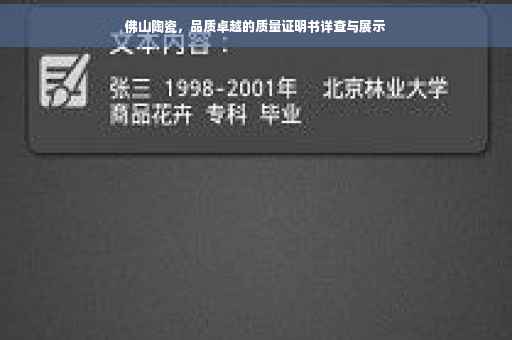 质量证明书是证明佛山陶瓷品质的重要文件,通常包括以下内容:
